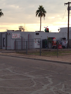 You asked for it, you got it. I stopped on my way home last night to get a photo of the strip club from this post, and took another photo in the dark this morning.
